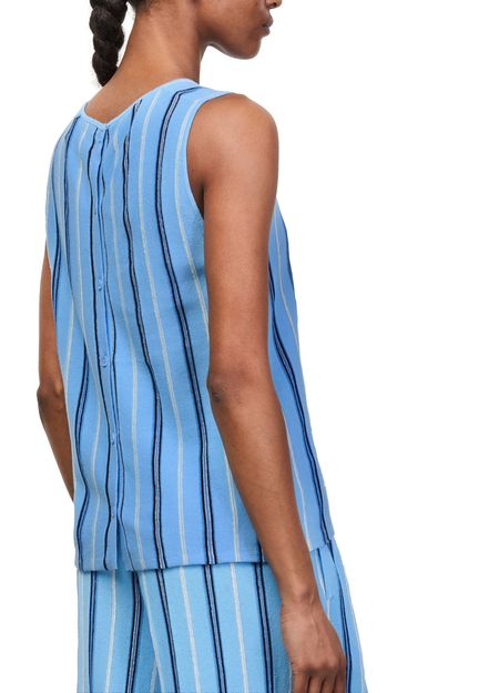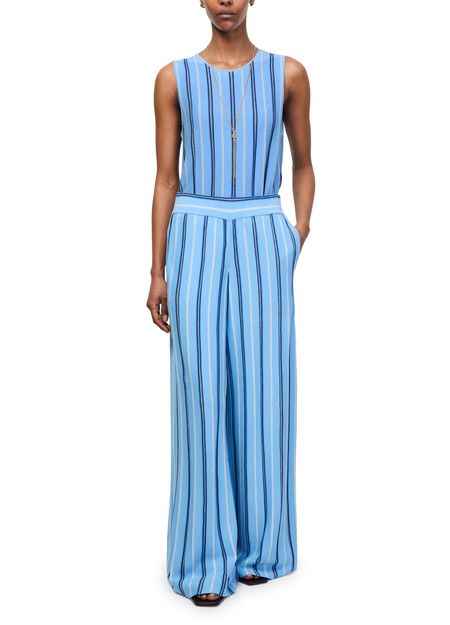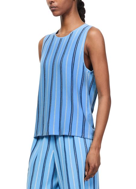 Genieße das ärmellose gestreifte Top von Bompard mit rundhalsausschnitt und markantem streifendruck. Die leichte Qualität und der moderne Schnitt machen es vielseitig kombinierbar – ob zu Jeans oder eleganten Hosen, dieses Top verleiht jedem Outfit eine stilvolle Note.
