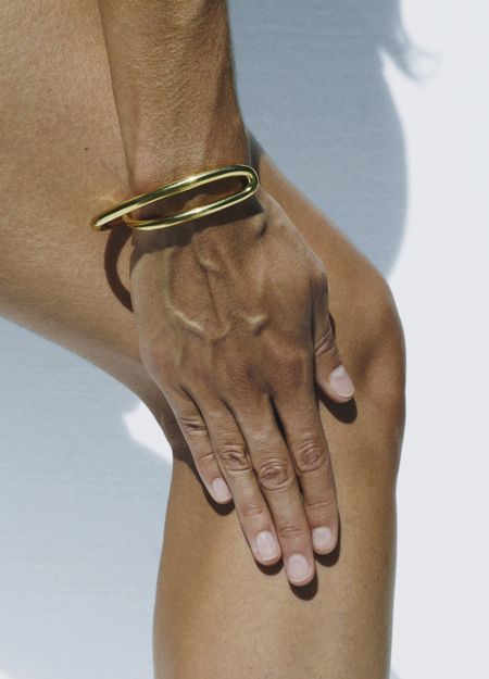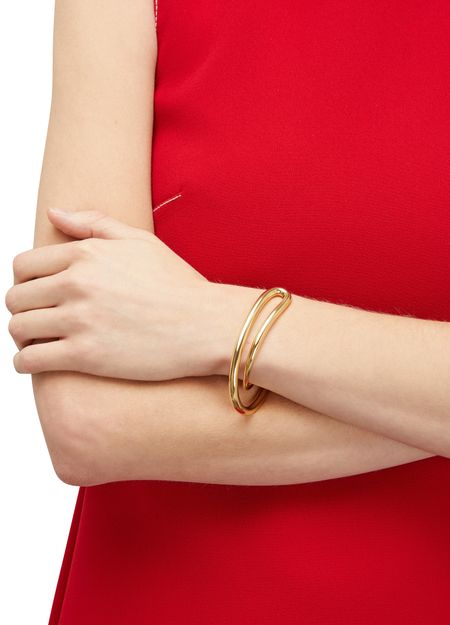 Die Leidenschaft von Charlotte Chesnais für poetische Kurven zeichnet sich an dem Armreif Initial ab. Die ausgehöhlte Armspange umspannt das Handgelenk elegant dank seiner weichen Linien, die wie von einem Pinsel gezogen wirken. Krempeln Sie die Ärmel einer Popeline-Bluse hoch, um diesen Goldschmuck optimal zur Geltung zu bringen.