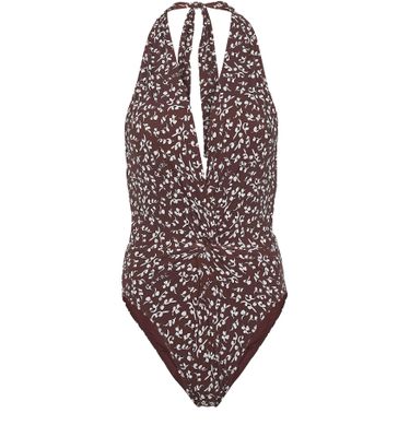 Dieser Badeanzug Ganni aus recyceltem Material bietet die Originalität eines zentralen Knotens auf dem Bauch, der dieses Bademodenstück mit einem eleganten Blumendesign dynamisiert.