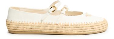 • Beschreibung : dicke laufsohle, riemen mit schnalle, flache absätze, runde zehe, sichtbar nähte, aufgedrucktes logo, triangel-logo, logo auf vorderseite, ballerinas, gold-finish.