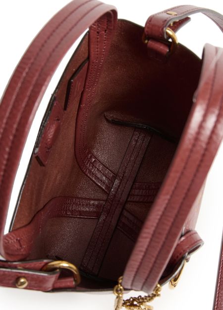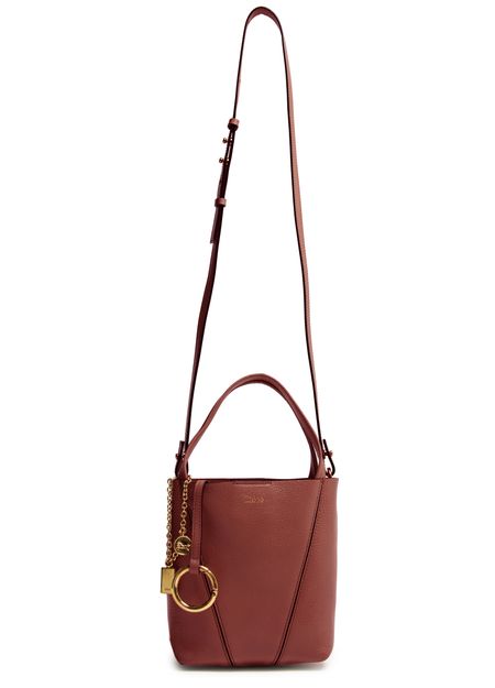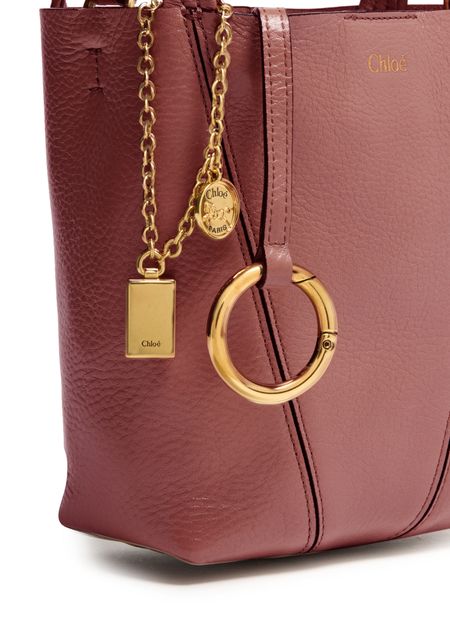 Genieße die Cabas-Tasche aus genarbtem Leder Chloe Spin, gefertigt aus edlem genarbtem Leder mit goldfarbenen Kettenanhängern. Signatur-Sattelstiche und ein Logo in goldfarbenen Buchstaben setzen Akzente, während ein dünner, verstellbarer Kettengurt und der Druckknopf-Verschluss stilvolle Funktionalität bieten.
