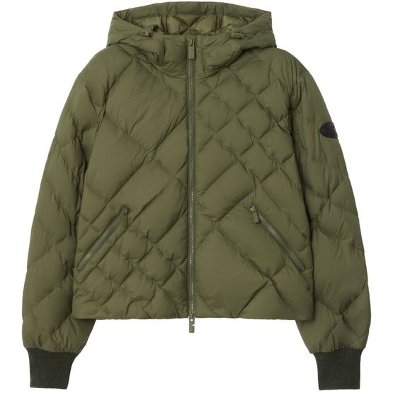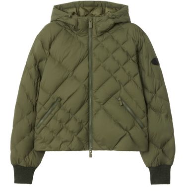 Genieße die kurze pufferjacke von Burberry, die mit ihrem hohen Kragen und der markanten Polstertextur einen modernen Look bietet. Das Rautenmotiv, seitliche Paspeltaschen und der dezente Logo-Akzent machen sie vielseitig kombinierbar – perfekt für urbane Styles und elegante Anlässe.