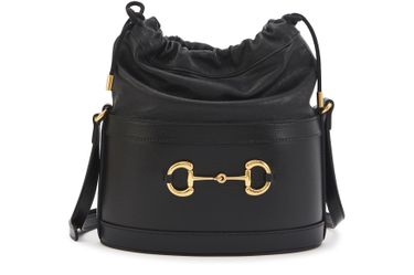 Bei der Eimertasche Morsetto setzt die Marke Gucci auf ein Spiel mit Materialien. Ihre starre Basis ist mit dem für das italienische Haus typischen Trensen-Detail verziert, was aus einem Doppelring und einer Stange besteht, die der Reitwelt entlehnt sind. Der obere Teil der Tasche ist viel weicher und wird geschnürt. Tragen Sie sie mit dem Schultergurt, der in halber Höhe befestigt ist.