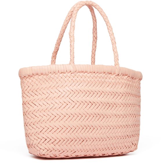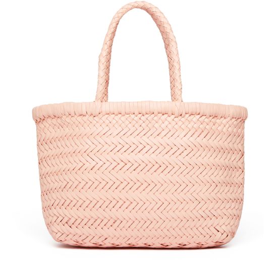Erlebe Dragon Diffusions Flache Mini-Cabas Mini Gora—ein mittelgroßes, vielseitiges Accessoire. Trage es in der Hand oder auf der Schulter, mit großem Innenfach. Genieße handwerkliche Kunstfertigkeit, die jede Korbgröße und jedes Detail einzigartig macht.