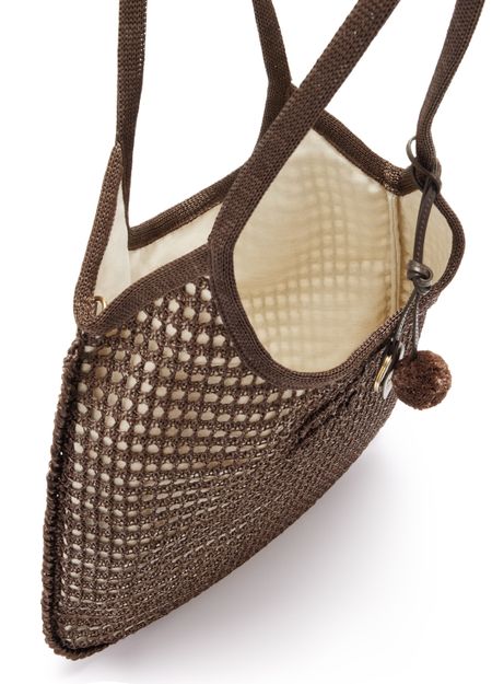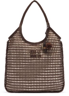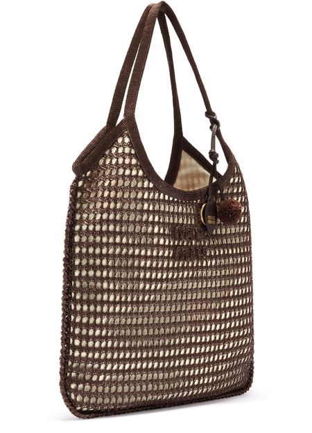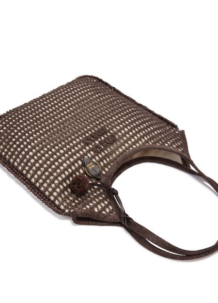 • Beschreibung : Schultertaschen, "Miu Miu“-logo mit metallbuchstaben, doppelgriffe, tragegriff, logo auf vorderseite, durchbrochene strickstruktur, fabric, metallic-finish.
