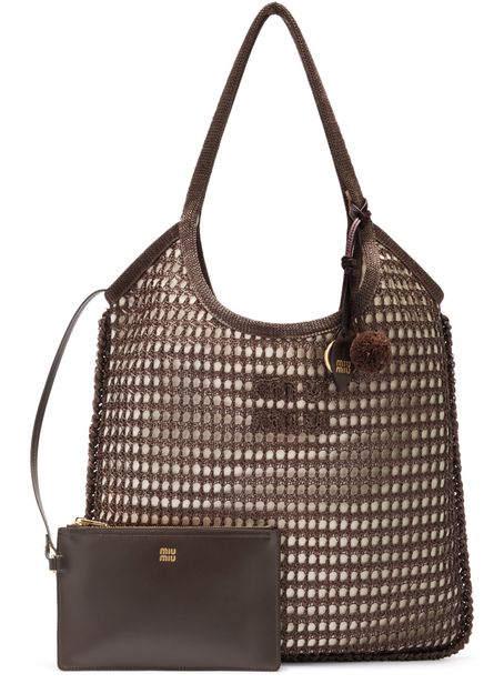 Entdecken Sie die Gehäkelte Schultertasche Ivy von Miu Miu, ein echtes Zeugnis zeitgemäßer Eleganz. Der metallische „Miu Miu“-Schriftzug glänzt auf der Vorderseite, während die Doppelhenkel vielseitige Tragemöglichkeiten bieten. Im Inneren vereinen sich eine abnehmbare Pochette und ein Stofffutter mit edlen Metall-Finishs zu einem raffinierten und funktionalen Statement.