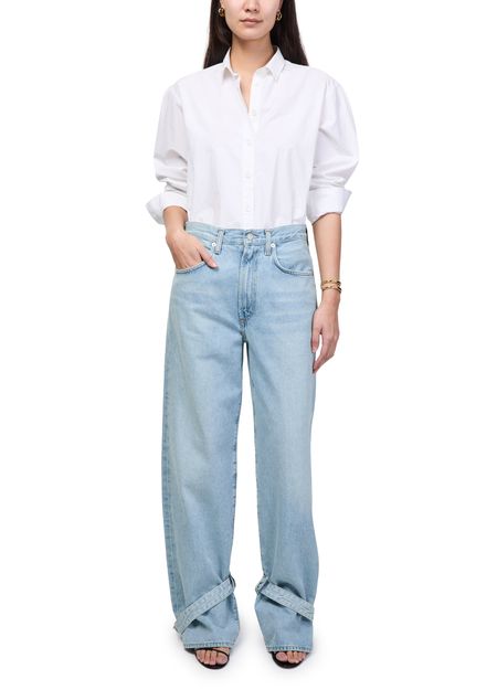 Genieße die gerade geschnittene Jeans mit engem Saum von Agolde, die mit knöchellänge und reißverschluss überzeugt. Sichtbare Kontrastnähte, Gürtelschlaufen sowie praktische Front- und Gesäßtaschen verleihen diesem Modell einen stilvollen und vielseitigen Charakter.