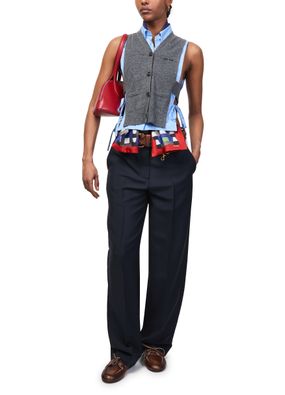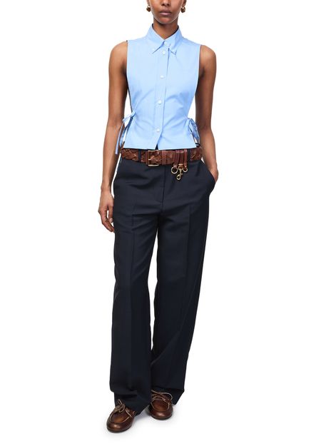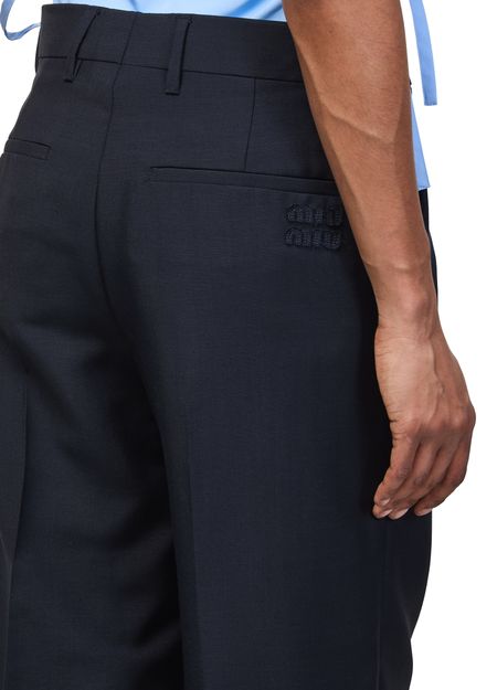 Genieße die gerade Hose aus Wolle von Miu Miu, die mit gegürteter Taille und knöchellänge für einen eleganten Look sorgt. Verdeckter Verschluss, paspelierte Pattentaschen und sichtbar nähte verleihen diesem business hosen Vielseitigkeit und Komfort für stilvolle Auftritte.