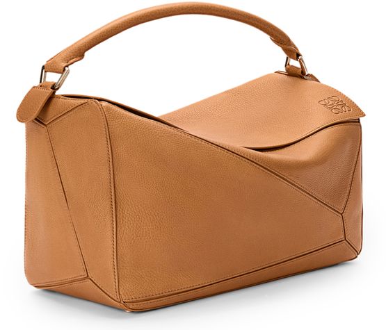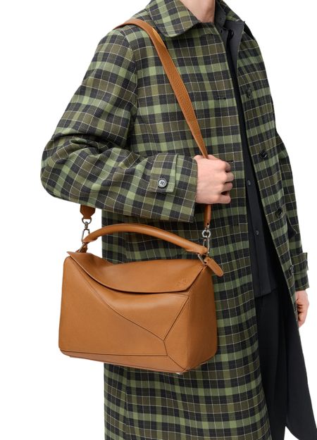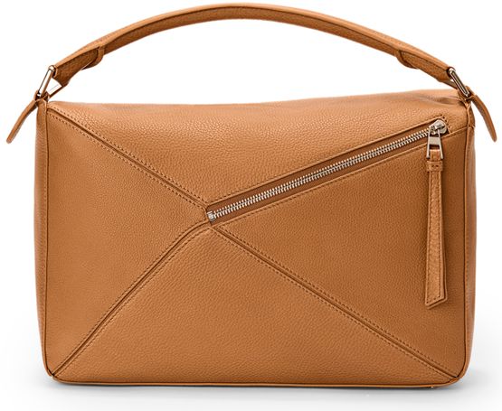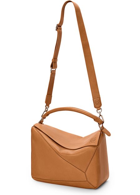 Entdecke Loewe's große Tasche Puzzle aus genarbtem Kalbsleder, die Stil und Funktionalität perfekt kombiniert. Das geprägte Logo und das Medaillon Anagram betonen die exquisite Handwerkskunst. Mit einem einstellbaren, abnehmbaren Tragegurt, einer Reißverschlusstasche auf der Vorderseite und sichtbaren Steppnähten passt sich diese Tasche von Schulter- zu Crossover-Tragen an.