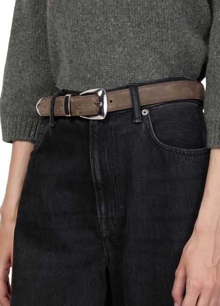 Admira Khaite's Gürtel Benny 30 MM aus edlem Veloursleder. Der verstellbare Verschluss und das schmuck aus silberfarbenem Metall verleihen ihm ein stilvolles Finish, das jedes Outfit perfektioniert. Dieser Gürtel passt sich sowohl legeren als auch formellen Anlässen an und ergänzt Ihre Garderobe vielseitig.