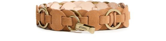 Entdecke den Gürtel Lota von Isabel Marant, einen atemberaubenden kettengürtel aus luxuriösem veloursleder. Der schmuck aus goldfarbenem metall und die ikonische markenschnalle verleihen einen opulenten Touch. Der verstellbare verschluss sorgt für perfekte Passform, während das logo in goldfarbenen buchstaben seinen einzigartigen Stil unterstreicht.