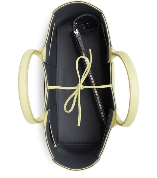Diese Cabas-Tasche Arco von Bottega Veneta ist aus 100 % Kalbsleder gefertigt. Ihre schlichte Farbe und ihr verfeinertes Design verleihen ihr einen entschieden eleganten Stil.