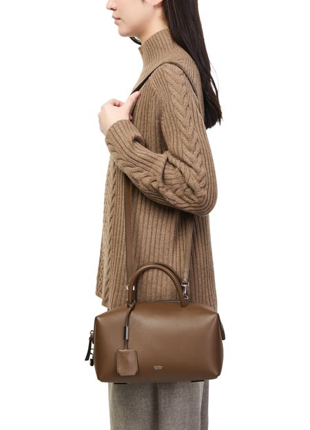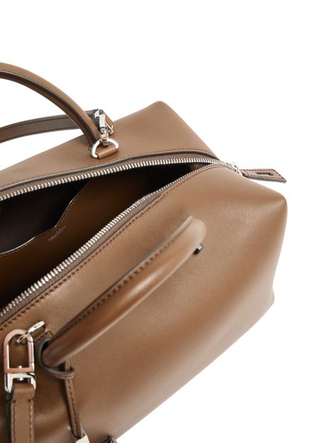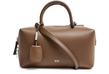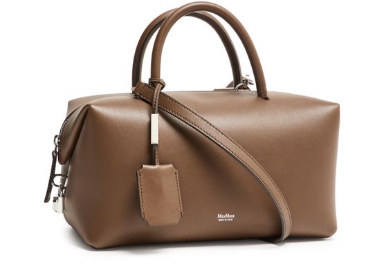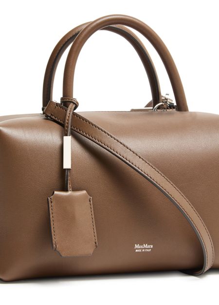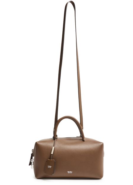 Genieße Max Mara Schultertasche aus glattem Leder mit doppelgriffen und dünnem, abnehmbarem Trageriemen. Das Logo auf der Vorderseite, Silberfinish und sichtbare Nähte unterstreichen das Design, während ein großes Innenfach mit aufgesetzten Taschen Funktionalität bietet.