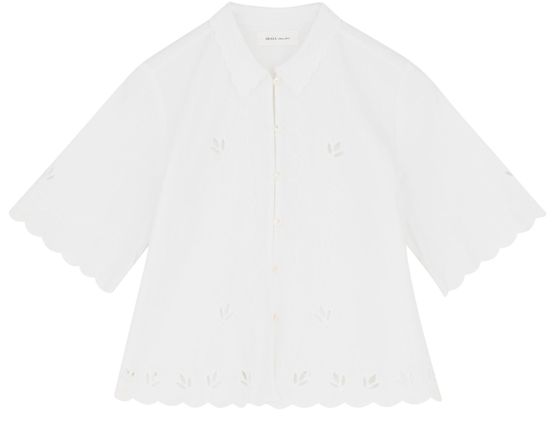 Genieße das Hemd fleurie von Skall Studio mit rundhalsausschnitt und kurzen Ärmeln. Florale Stickerei und ein eleganter Knopfverschluss verleihen diesem Top einen stilvollen Akzent – perfekt kombinierbar für entspannte oder anspruchsvolle Outfits.