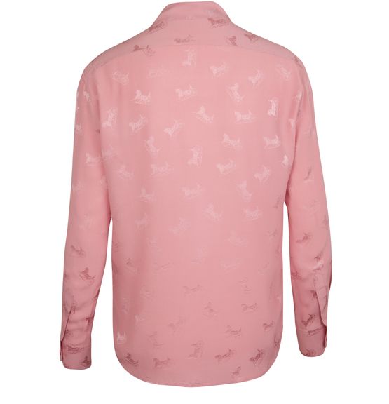Das Hemd Loose aus Seidenjacquard hat bereits auf dem Laufsteg mit seinem Lavallière-Kragen und dem zarten Sulky-Motiv bezaubert. Celine hat hier eine raffinierte Kreation mit Perlmuttknöpfen geschaffen.