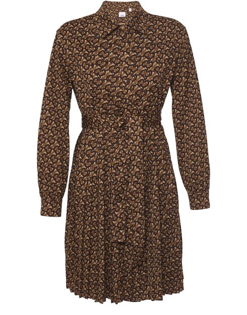 Ein Hemdkleid aus Jersey im Monogrammmusterdesign mit Faltenpanels und einem Lederknopf in Knotenoptik am Kentkragen. Ein eleganter Bindegürtel an der Taille sorgt für eine figurbetonte Silhouette.