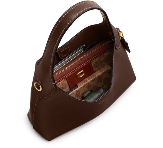 Genieße Hobo Bag Brooklyn 23 Coach aus glattem Leder mit Zieretikett und geprägtem Coach-Logo. Einzelner Griff und abnehmbarer Kettengurt sorgen für flexible Tragemöglichkeiten. Magnetschließe, offene Innentasche und gold-finish Details unterstreichen das stilvolle Design mit sichtbaren Steppnähten.