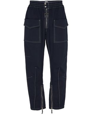 • Beschreibung : reißverschluss, silberfinish, etikett mit logo auf der rückseite, contrast, knöchellänge, paspelierte pattentaschen, hintertasche, große fronttasche, pattentasche, freizeit hosen.