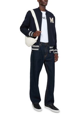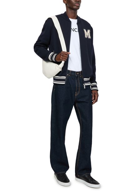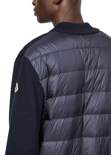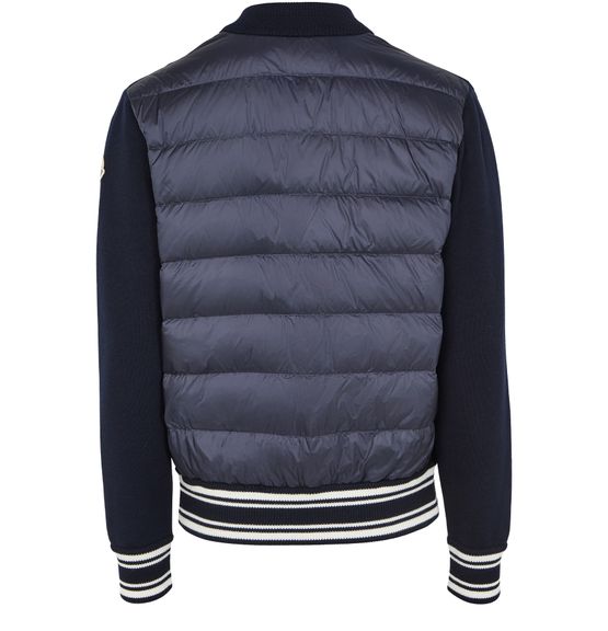 Erlebe Monclers Jacke im Materialmix, die Stil und Komfort vereint. Diese regular fit Jacke mit hohem Kragen und langen Ärmeln hat einen praktischen Reißverschluss. Mit Seitentaschen, aufgesticktem Logo auf der Brust und Polstertextur ist sie ideal für jeden Anlass.