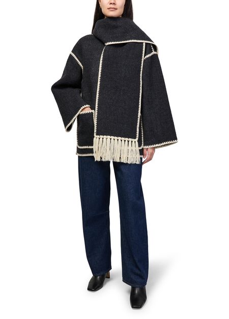 Genieße die Jacke mit besticktem Foulard von Toteme – kurz geschnitten, mit langen Ärmeln und feinen Stickdetails. Die moderne Silhouette und der elegante Look machen sie zum perfekten Begleiter für entspannte Outfits oder stilvolle Anlässe.