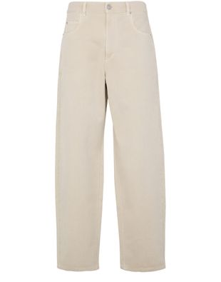 Beschreibung : knopfverschluss und verdeckter reissverschluss, gürtelschlaufen, lederetikett auf der rückseite mit logo, sichtbar, five-pocket-style, weiter schnitt, denim, niedrige taille.