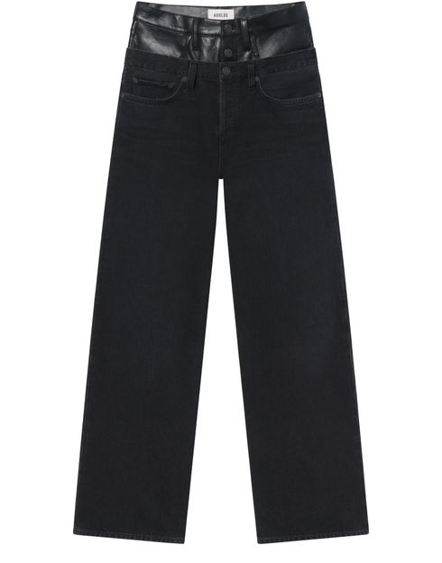 Entdecke Agoldes knöchellangen denim-jean mit hoher taille, ein Meisterwerk aus Stil und Komfort. Mit schwarzem Lederfinish gefertigt, bietet er lederapplikationen und sichtbare Nähte. Das Design mit Knopfverschluss und Gürtelschlaufen bietet Vielseitigkeit für jeden Anlass, während zwei Fronttaschen und eine aufgesetzte Hintertasche Funktionalität hinzufügen.