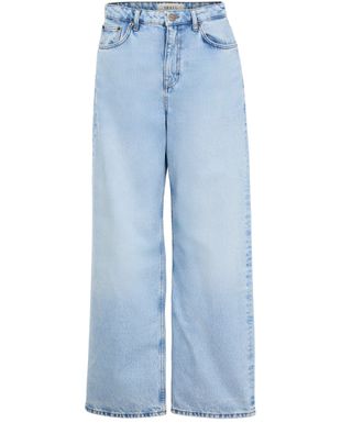 Beschreibung : knopfverschluss und verdeckter reissverschluss, gürtelschlaufen, logoapplikation, sichtbar nähte, knöchellänge, five-pocket-style, denim, weiter schnitt, tiefgeschnittenes modell.