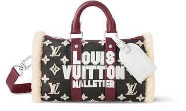 Das einzigartige, charakteristische Design der neuen Shearling Keepall 25 ist von dem zeitlosen Look von Vintage-Jacken im Pilotenstil inspiriert. Ein Besatz aus dunkelrotem Leder und eine auffällige Louis Vuitton Malletier Signatur vor einem Hintergrund mit Monogram-Motiv ergänzen den stilvollen Entwurf aus Lammfell und Rindsleder. Ein funktionales, ergonomisches Modell, das ein eindrucksvolles modisches Statement setzt.