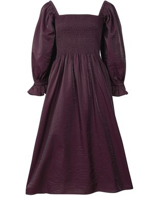 • Beschreibung : Midikleid, karree-Ausschnitt, empire-Taille, dreiviertel-Ärmel, geraffte und plissierte Details, fließender Stoff.