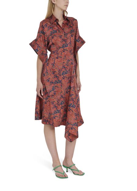 Die romantische Essenz des Modehauses JW Anderson wird durch dieses elegante Kleid mit langen Ärmeln veranschaulicht. Sein traditioneller Kragen wird durch einen asymmetrischen Fall modernisiert.