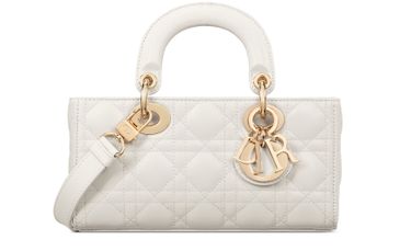 Erlebe die kleine Lady D-Joy Tasche von Dior mit abnehmbarer Ketten- und verstellbarer Lederschulterriemen. Inklusive Staubbeutel, bietet dieses Modell zeitlose Eleganz für jeden Anlass.