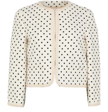 • Beschreibung : punktmotiv, kragenlos, hakenverschluss, legere jacken, paspelierte pattentaschen, zwei fronttaschen, lange ärmel, kurze.