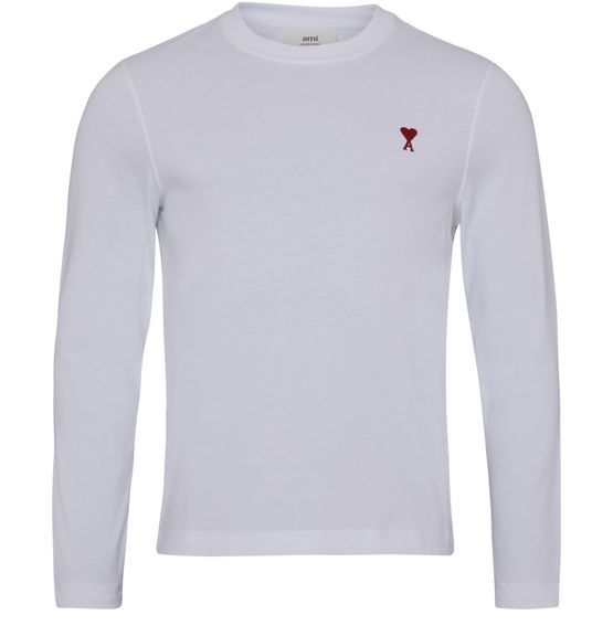 Beschreibung : T-Shirt mit Rundhalsausschnitt, gerader Schnitt, lange Ärmel, aufgesticktes Logo auf der Brust, rote Stickerei auf der Brust, ton-in-Ton-Stickerei "AMI" unter dem Rückenausschnitt, gOTS (Global Organic Textile Standard) zertifiziertes Produkt.