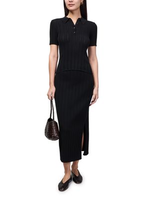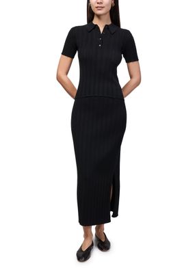 Genieße den langen Rock aus unregelmäßigem Rippstrick von Bompard, der mit elastischer Taille und geradem Schnitt überzeugt. Die besondere Rippenstruktur verleiht dem Look eine moderne Note, während die Maxi-Länge stilvolle Vielseitigkeit für Tag und Abend garantiert.