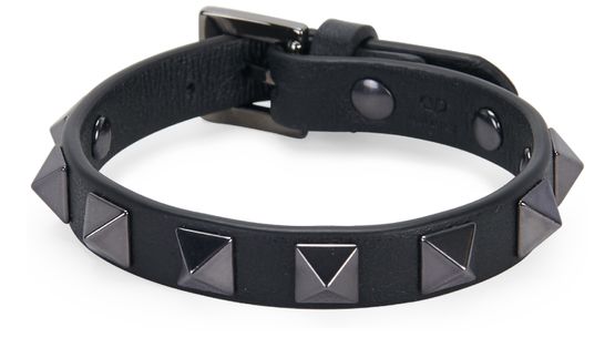 Dieses aus Kalbsleder gefertigte Armband von Valentino Garavani zeigt stolz die berühmten Rockstuds-Metallnieten des Modehauses. Sein stilvolles Design lässt sich längentechnisch am männlichen Handgelenk einstellen.
