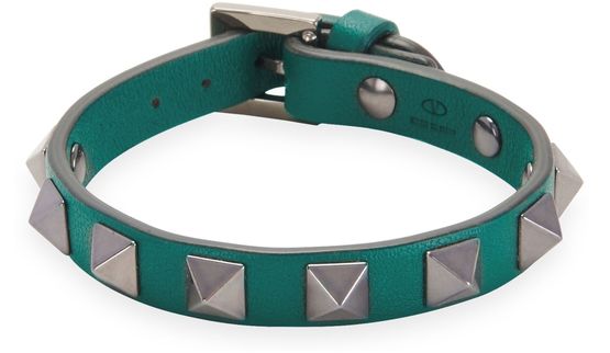 Dieses aus Kalbsleder gefertigte Armband von Valentino Garavani zeigt stolz die berühmten Rockstuds-Metallnieten des Modehauses. Sein stilvolles Design lässt sich längentechnisch am männlichen Handgelenk einstellen.