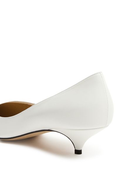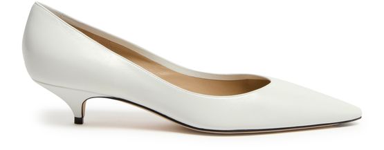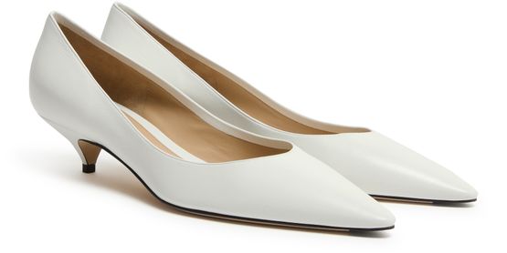 Genieße die Lederpumps Liisa Kitten Two von The Row, gefertigt aus glattem Leder mit spitz zulaufender, geschlossener Vorderpartie und stilvollem Stilettoabsatz. Sichtbare Nähte und ein dezentes Design verleihen moderne Eleganz, während der niedrige Absatz angenehmen Tragekomfort bietet.