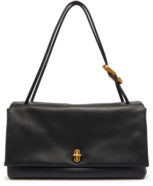 Die The Large Dual Ledertasche von Marc Jacobs zeichnet sich durch einen stilvollen Drehverschluss und ein geräumiges Einzelfach aus. Ihre doppelten Griffe bieten Vielseitigkeit, während der dünne Riemen das Tragen über der Schulter ermöglicht. Ein Metallic-Logo auf der Vorderseite und sichtbare Ziernähte verleihen Eleganz, ergänzt durch eine Innentasche mit Reißverschluss zur Organisation.