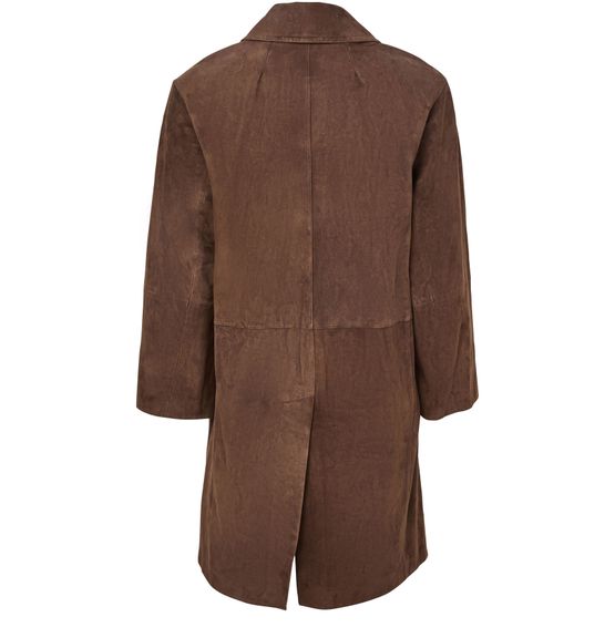 Genieße den Mantel mit einfacher Knopfleiste von S Max Mara, gefertigt aus weichem Veloursleder. Die knielange Form, der klassische Kragen und Pattentaschen verleihen zeitlose Eleganz. Lange Ärmel und der klare Verschluss machen dieses Modell vielseitig kombinierbar für jeden Anlass.