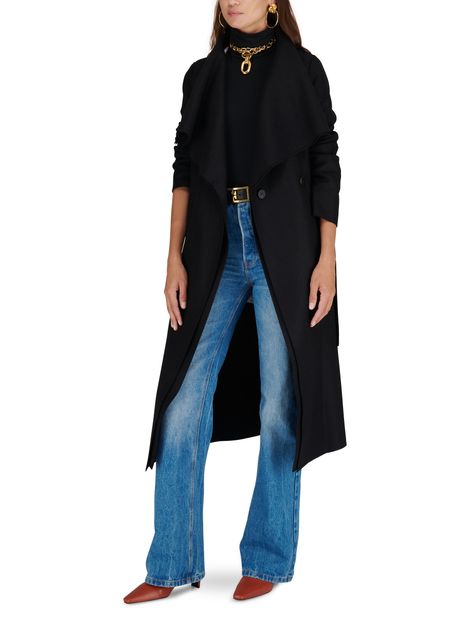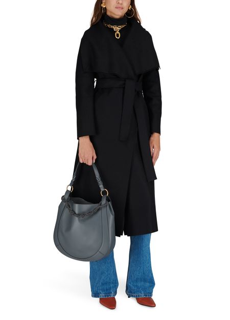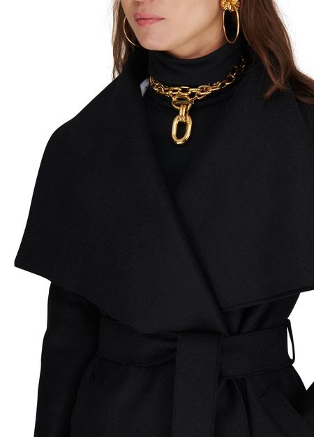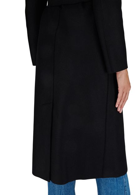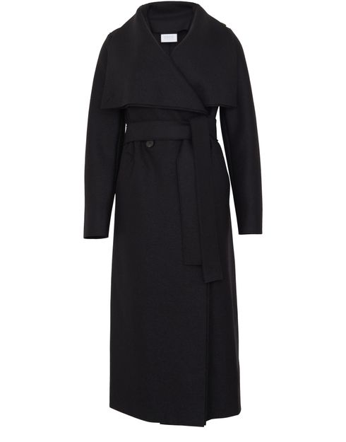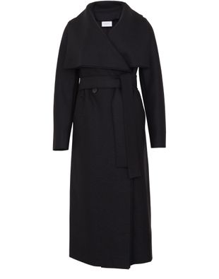 Der weite Mantel Volcano aus gepresster Wolle von Harris Wharf wird mit einem Knopf an der gegenüberliegenden Schulter sowie an der Taille geschlossen.