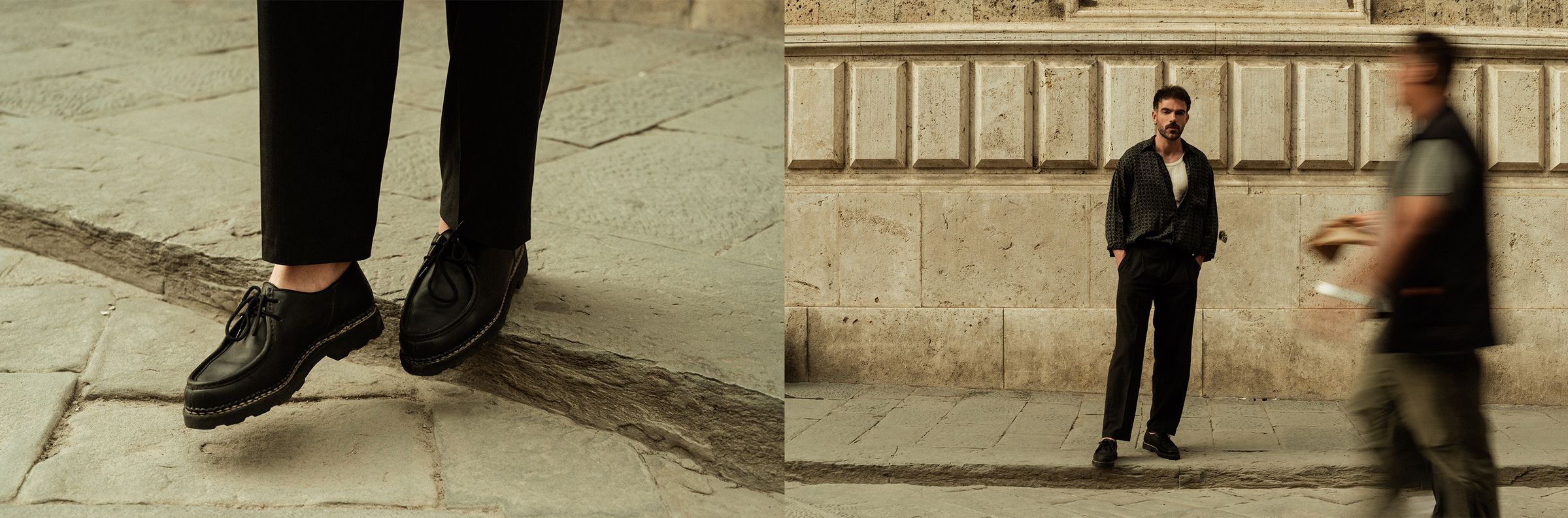 Seit vier Generationen stattet Paraboot Männer mit Schuhen aus, die Zeitgeist und Mode überdauern. Von 1908 bis zu den neuesten Kollektionen zelebriert die französische Marke einen Stil auf höchstem Niveau, der mit seinem Tragekomfort und seinem lässigen Look begeistert. Ein Modell aus dem Hause Paraboot wird stets in Frankreich hergestellt und verkörpert ein herausragendes Traditions-Know-how. Genähte Bootsschuhe, Stiefeletten, Derbys, Mokassins, Richelieus, Sandalen oder Sneakers sorgen für einen charakterstarken Auftritt. Die traditionelle Technik und die Profilsohle aus Gummi sind dabei die Erfolgsmerkmale des Labels. Die sportlichen und wandertauglichen Schuhe der Marke sind ebenso robust wie modisch urban. Mit dem Entwurf des ikonischen Michael im Jahr 1945 startete Paraboot den weltweiten Siegeszug. Die Kollektionen des Unternehmens aus dem Isère umfassen heute auch Herrenaccessoires wie Gürtel, Socken und Kleinlederwaren zur Vervollständigung eines Outfits.