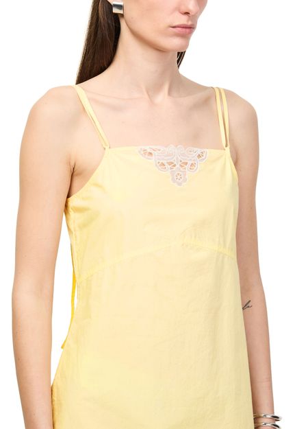 Entdecke das ärmellose, knielange Strandkleid mit rechteckigem Halsausschnitt von Soeur, veredelt durch feine Spitzendetails. Träger und Seitenschlitz verleihen dem Look moderne Raffinesse, während das leichte Design vielseitige Eleganz für jeden Anlass garantiert.