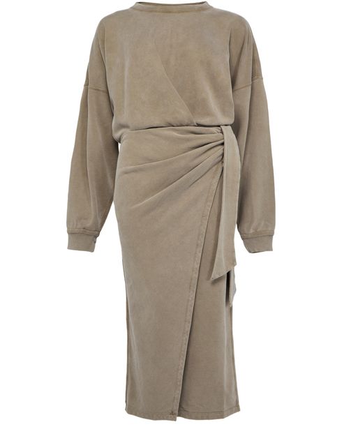 • Beschreibung : sichtbar nähte, midikleid, rundhalsausschnitt, lange ärmel, eng anliegende ärmel, gestricktes kleid.