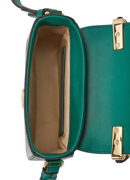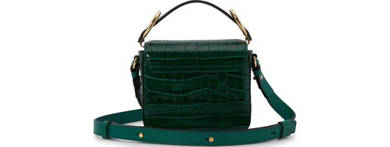 Beschreibung : Minitasche, einstellbarer und abnehmbarer Tragegurt, ledergriff, leder mit Krokodilprägung, klappenverschluss, magnetschließe, metalllogo auf der Vorderseite, zum Tragen in der Hand, über der Schulter oder crossbody.
