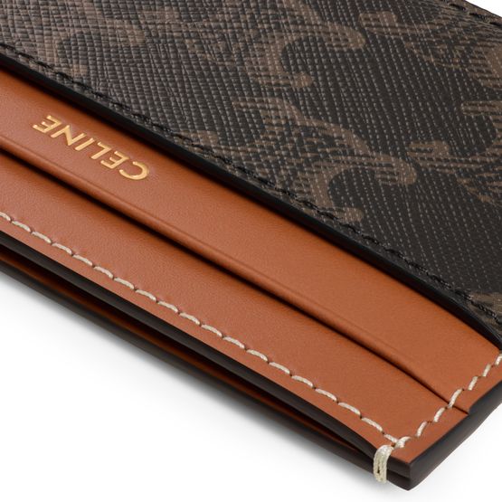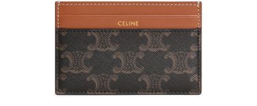 Erlebe das mittelgroße Kartenetui aus Triomphe-Canvas und Kalbsleder von Celine. Dieses stilvolle Accessoire besticht durch goldfarbene Details, vier Kreditkartenfächer und ein flaches Fach, ideal für stilbewusste und funktionale Ansprüche.