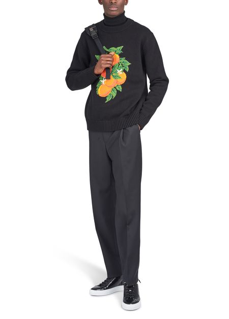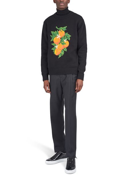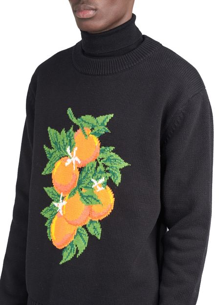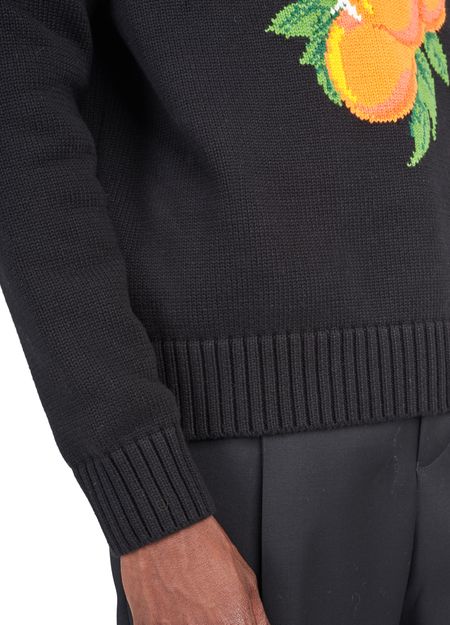 Das Modehaus Casablanca enthüllt diesen erstaunlichen Pullover mit einem authentischen Design, gekleidet in eine originelle und poetische Grafikgestaltung namens „Orangenblüte“, in einem ultramodernen Stil.
