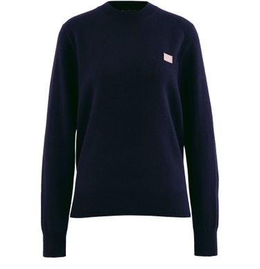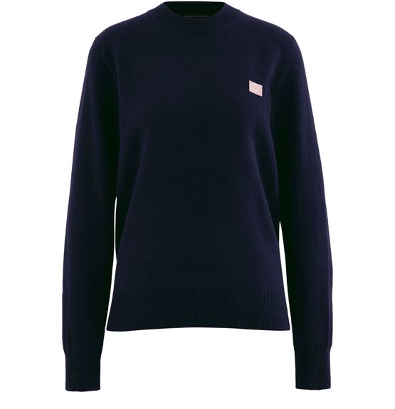 Der Pullover Kalon von Acne Studios, der klassisch und leicht mit einer Hose zu verdrehen ist, erhält einen pudrigen Farbton. Das Haus signiert diese Kreation mit einem minimalistischen Abzeichen.