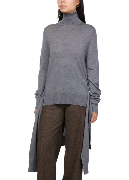 Entdecke Totemes Rollkragenpullover mit Doppelärmeln, ein Meisterwerk der Strickmode. Dieses lange, rippbündchen Stück bietet eine melierte Textur und einen modernen Twist mit seinem kürzeren Vorderteil. Die langen Ärmel und der Rollkragen schaffen eine elegante Silhouette, perfekt für vielseitige Stylings.