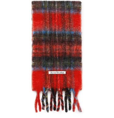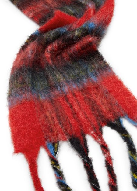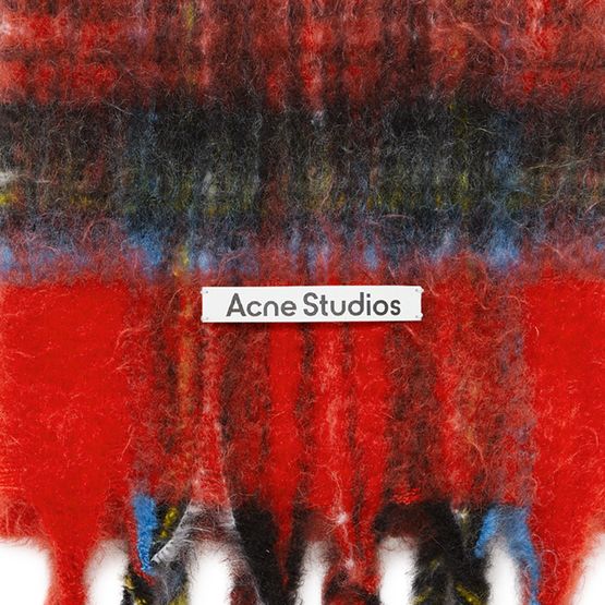 Genieße den Schal aus Mohair von Acne Studios mit markantem Streifendruck und ausgefransten Rändern. Das Logo auf der Vorderseite setzt ein stilvolles Statement – ein modernes Accessoire für einen trendbewussten Auftritt.