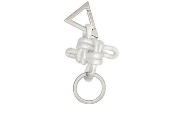 Der Schlüsselanhänger Nœud aus Leder von Bottega Veneta ist ein echtes Design-Accessoire, das die ikonische Dreieckslinie des Modehauses aufgreift und von einem authentischen Lederknoten begleitet wird.